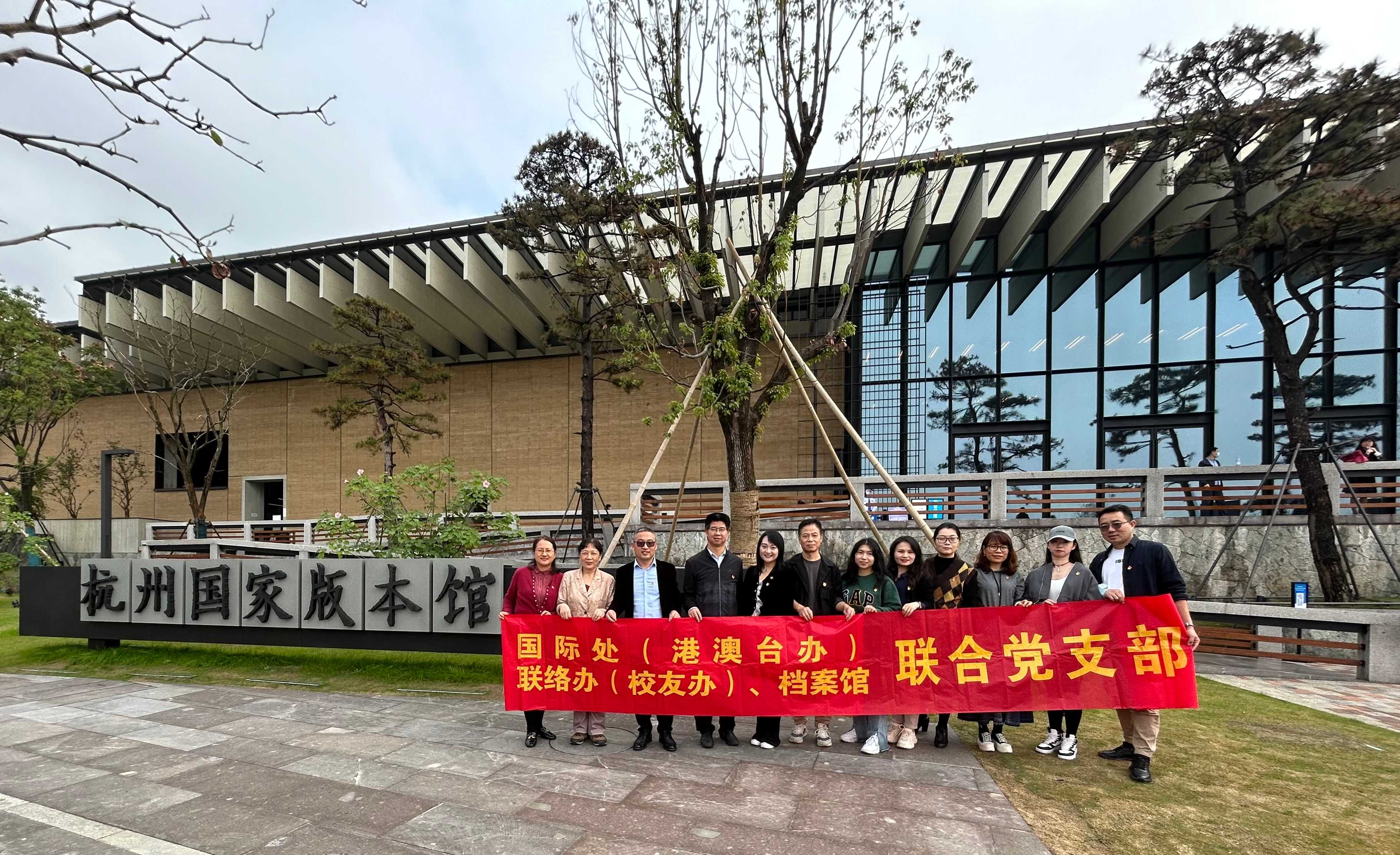 为深入学习贯彻党的二十大精神,11月11日,国际处(港澳台办)、联络办(校友办)、档案馆联合党支部赴杭州国家版本馆开展主题党日活动,参观中华版本资源。