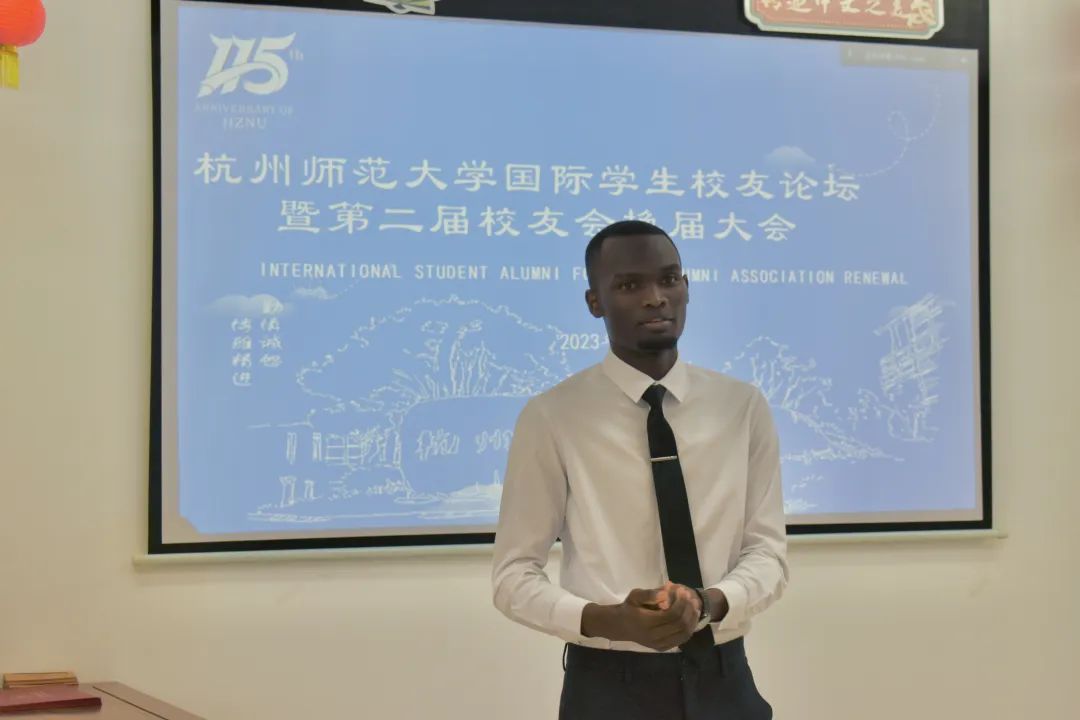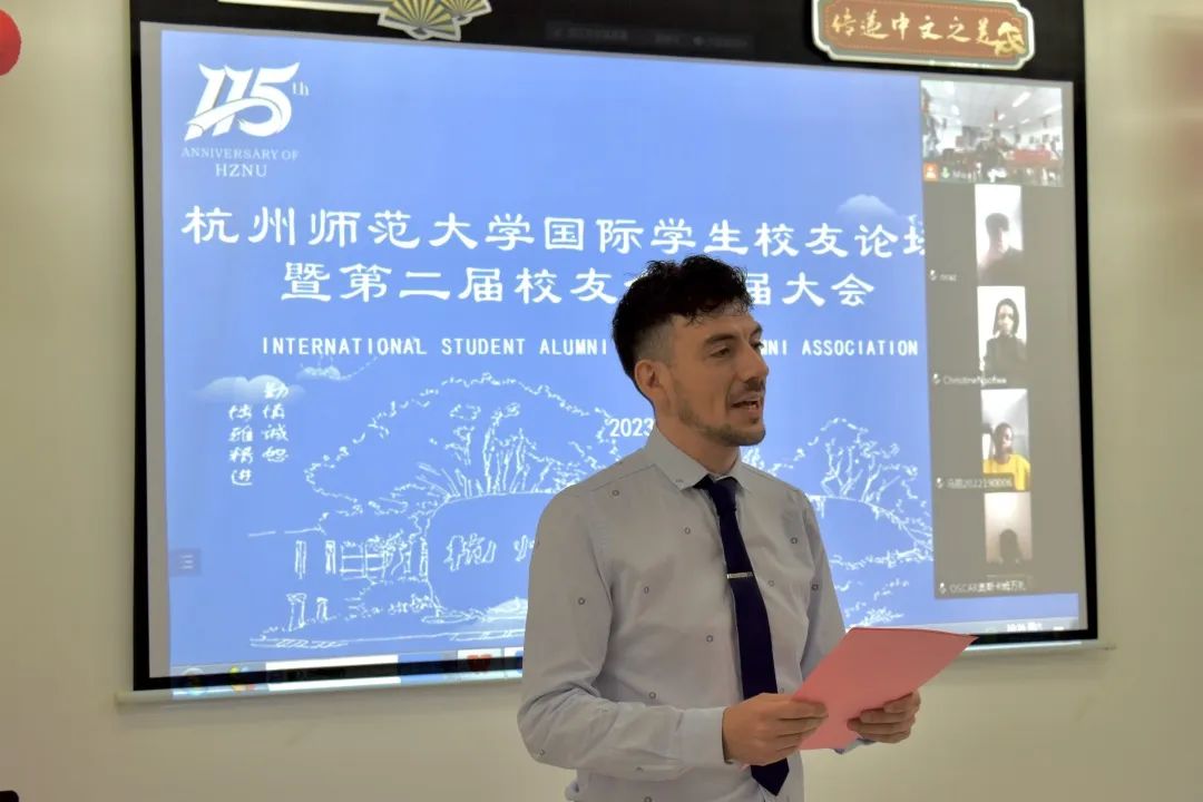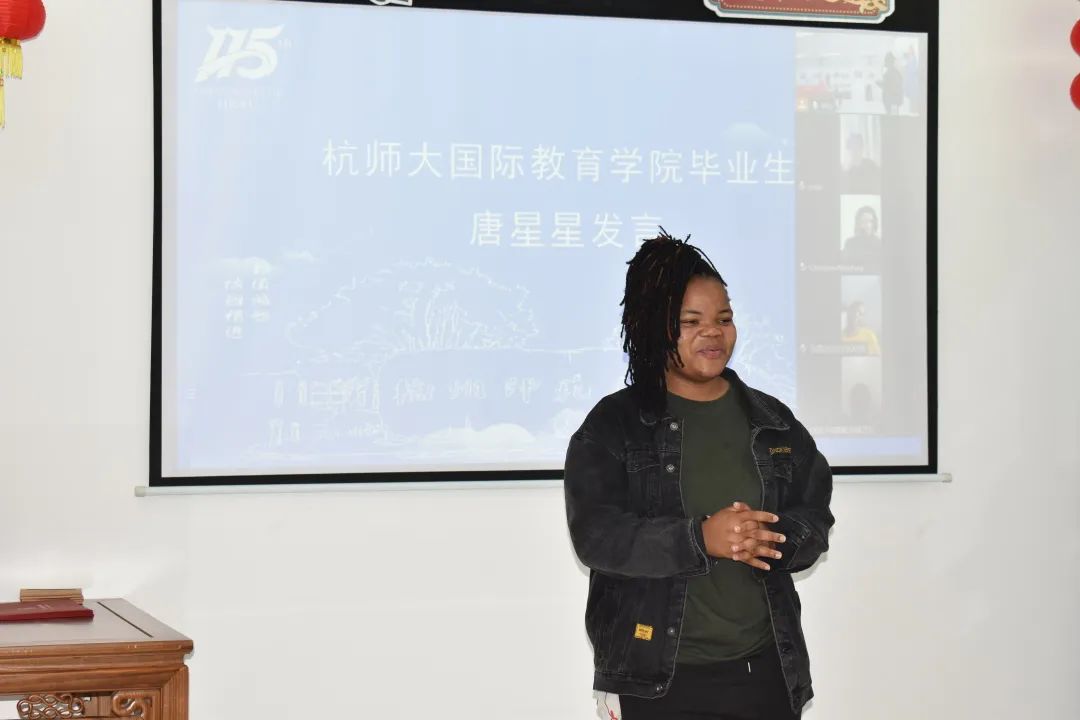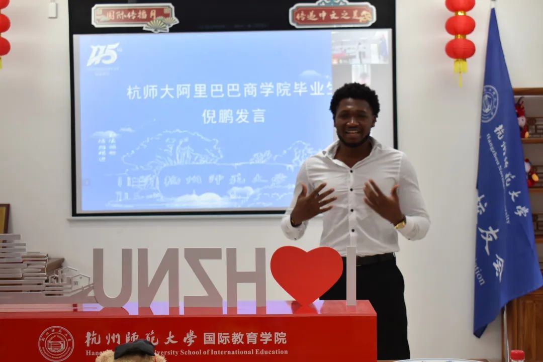 随后,来自尼泊尔、赞比亚、莫桑比克、尼日利亚、也门、土库曼斯坦的校友们线上线下分享了他们从杭州师范大学毕业后的生活故事,校友们纷纷表示在杭师大求学的这段经历将成为人生中宝贵的财富。作为预毕业生的叶永,也表达了对母校的感谢,他说在校的老师和同学们给他提供了许多帮助,他十分舍不得离开母校,希望毕业后能继续为母校贡献一份自己的力量。