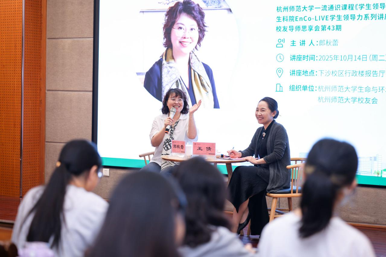 2025年10月14日晚,我校2001届应用生物技术教育专业校友、杭州联川生物技术股份有限公司董事长兼总经理、博士、正高级工程师郎秋蕾做客校友导师思享会第43期、校一流通识课程《学生领导力素养提升》、生科院EnCO-LIVE学生领导力系列讲座,并做了题为“深耕基因测序领域的二十年:从实验室到多组学技术高地”的讲座。活动由杭州师范大学校友会主办,杭州师范大学生命与环境科学学院校友分会承办,生科院党委副书记王倩主持,近200名师生参加。