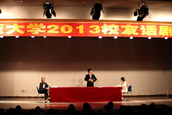 6月2日晚,由校友联络办公室、校校园戏剧创研中心共同主办,校流霞剧社承办,钱江学院团委协办的2013校友话剧专场演出在文一路校区音乐楼7楼演出厅上演。300余个座位座无虚席。