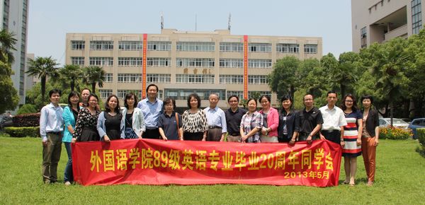 2013年5月19日,外国语学院“89级英语专业毕业20周年同学会”在文一路校区举行,89级校友与当年任课教师、学院领导20余人相聚在一起,共同回忆起当年在校的学习和生活。